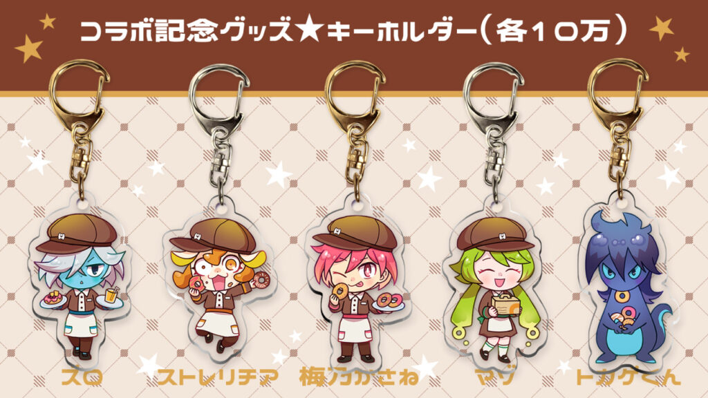すずかさんのキャラデザはポップ&ちょっぴりダークなイメージなので、濃いめの色合いが似合うと思いこげ茶色を多用したデザインでドーナツショップにしました。シンプルな配色の中にカラフルな髪色が映えると思います。